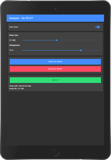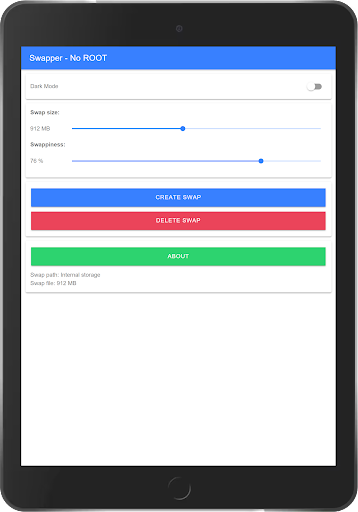 หลักการทำงาน: แอปพลิเคชันสร้างไฟล์ SWAP เพื่อสร้างพื้นที่เพื่อแบ่งปันทรัพยากรกับ RAMอย่างไรก็ตามเนื่องจากไม่มีสิทธิ์รูทแอปพลิเคชันจึงถูก จำกัด ให้สร้างไฟล์ได้สูงสุด 2GBไฟล์ SWAP อยู่ในไดเรกทอรีข้อมูลของระบบในฐานะผู้ใช้ดังนั้นคุณจะไม่พบไฟล์ SWAP หากคุณเปิดตามปกติ