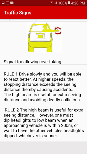 Traffic Signs Guidelines is best app to learn traffic signs and rules for driving license of cars and motorcycles. It’s all about you and people around them. All Traffic Sings and other guidelines are described with all necessary instructions available provided by City Traffic Police and Licensing Authorities. The app contains all the major road and traffic signs. And that is the basic knowledge that is very important to know everyone.