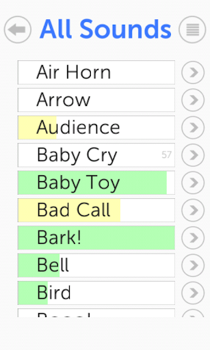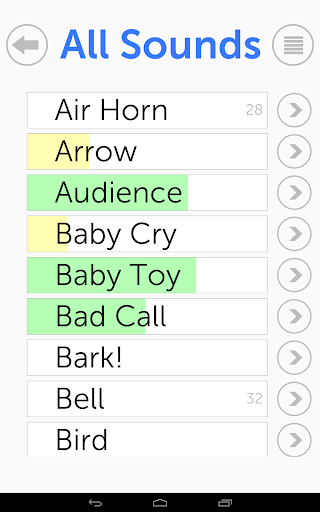 เลื่อนรายการที่จะได้รับการเข้าถึงเสียงทั้งหมดของคุณ แตะปุ่มลูกศรขวาติดกับเสียงในรายการโปรดสลับและเปิดใช้งานตัวนับเสียง สลับมุมมองระหว่างทุกเสียงและชื่นชอบโดยการแตะที่ปุ่มมุมมองอยู่ที่มุมขวาบนของหน้าจอ |