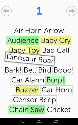 Air Horn, ลูกศร, ผู้ชม, Baby Cry, ของเล่นเด็ก, Bad โทร เปลือก !, กระดิ่งนกปลุก Booo !, เรอ !, รถยนต์, รถฮอร์น, Censor ปี๊บ, เลื่อยโซ่, คริกเก็ต, ไดโนเสาร์คำราม, ออด, Drum Roll, ระเบิด, ผายลม !, เกม Buzzer, Game Over เกมชนะแก้ว Break, กอล์ฟ Clap, สวิงกอล์ฟ, พิณ, สยองขวัญ, ร้อนๆ !, บ้าหัวเราะใส่เหรียญ, โจ๊ก, Kiss, Laserbeam หัวเราะติดตามสิงโตคำราม !, Magic, Mooo !, จมูก Oooooh !, โทรศัพท์โทรไซเรนตำรวจ, Quack !, บันทึกรอยขีดข่วน, จรวด, ปืนลูกซอง, สล็อตแมชชีน, Slurp !, ผู้เข้าชมอวกาศดาบชักโครก, อูซี่ปืนสัญญาณเตือน, แส้, นกหวีด, ซิป |