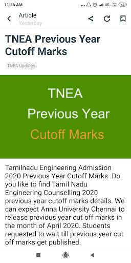 ข่าวการให้คำปรึกษา TNEA 2021 Cut off Calculator เป็นแอปพลิเคชั่น Android ที่คุณสามารถค้นหาการแจ้งเตือนล่าสุดเกี่ยวกับการรับสมัครทางวิศวกรรมทมิฬนาฑู 2020 นักเรียนสามารถรับข้อมูลเกี่ยวกับขั้นตอนการให้คำปรึกษาออนไลน์ของมหาวิทยาลัย Anna University ซึ่งคำนวณ TNEA ตัดเครื่องหมายผู้สมัครสามารถรับรายละเอียดเกี่ยวกับการเปิดตัวการแจ้งเตือนออนไลน์ของ TNEA 2020 การส่งใบสมัครออนไลน์วันที่ล่าสุด
