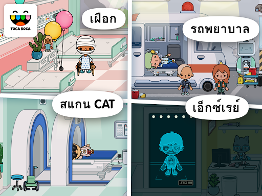 Toca Life: Hospital ให้คุณบอกเล่าเรื่องราวสมมติหรือเรื่องจริงเกี่ยวกับการตรวจสุขภาพ การฉายเอ็กซ์เรย์ และทุกสิ่งทุกอย่างที่เกิดขึ้นในโรงพยาบาลในแต่ละวัน
