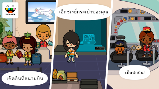 มีสถานที่สี่แห่งให้สำรวจใน Toca Life: Vacation คุณสร้างเรื่องราวได้อย่างไม่รู้จบ ต้องการไปสนามบินเพือเริ่มต้นการผจญภัย สนุกกับเครื่องเอ็กซเรย์ นั่งเครื่องบิน และเยี่ยมเยือนห้องนักบิน และทานขนมรหว่างการเดินทาง ณ ปลายทางของคุณ มีหลายกิจกรรมให้เลือกทำ เช่น ช็อปปิ้ง และชมวิวข้างทาง เล่นสนุกที่ชายหาด และเล่นเซิร์ฟ และสำรวจโรงแรม