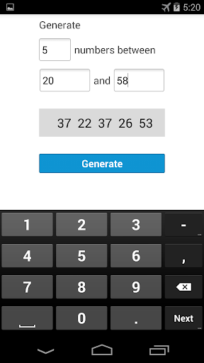 Generate Random Numbers N-Digits Random Numbers Multiple Random Numbers (Example: 5 Numbers between 12 and 100 )