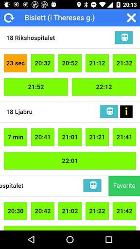 - Monitor the departure time of selected Entur stop, the walking time from your current location to the Entur stop, and estimate when you need to start walking to to make it to the stop before departure time.
