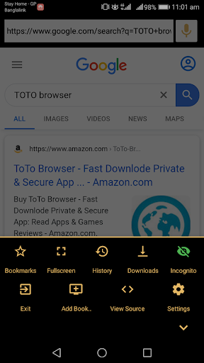 Toto Browser is A Ultimate Incognito Browser and Very Safe . The Browser has Incognito mode Button in the front Of the browser. You can clear history easily. The Clear history button also in the front of our browser.