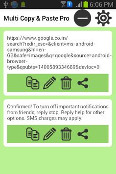 Now access your Multi Copy and Paste Pro Free app and you will see the different selection of saved texts.