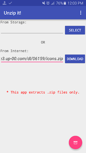 * Note: This app extracts .zip files only. Also, this app can not extract protected files.