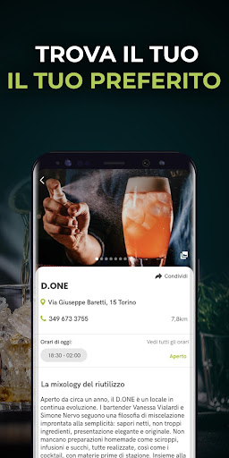 Ogni scheda contiene la foto del locale, dei cocktail e del bartender o della barlady.