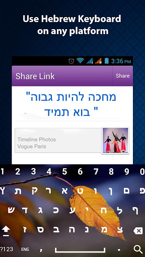 With all these features, "Easy Hebrew keyboard" is ready to rock your devices in modern as well as traditional manner. Impress your friends and family with this exciting keyboard and we are sure you would like it! Don't forget to share this amazing keyboard with your friends and family. Share your valuable feedback with us to further improve this application.
