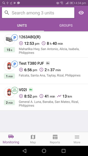 3. โหมดแผนที่ - ดูยูนิต, geofences, แทร็ก, พร้อมตัวเลือกในการตรวจสอบตำแหน่งของคุณเอง ค้นหาหน่วยโดยตรงบนแผนที่โดยใช้ช่องค้นหา