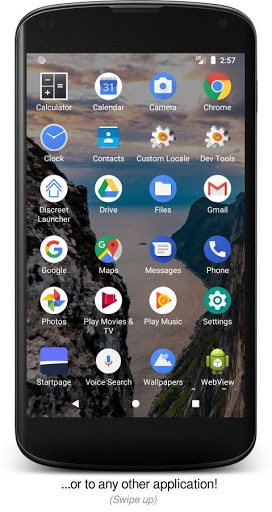 Discreet Launcher มอบหน้าจอหลักที่ปราศจากสิ่งรบกวนให้คุณเพลิดเพลินกับวอลล์เปเปอร์ของคุณอย่างเต็มที่ (เฉพาะแถบสถานะและแถบนำทางที่ได้รับการเก็บไว้เพื่อความสะดวก)