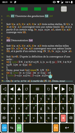 Zeta Math จะช่วยให้คุณสามารถเขียนเอกสารคณิตศาสตร์แบบออฟไลน์บนโทรศัพท์ Android ของคุณคุณสามารถใช้แป้นพิมพ์เป็นแป้นพิมพ์เริ่มต้นของคุณและสลับได้อย่างรวดเร็วตามที่คุณต้องการด้วยทางลัดที่เรียบง่าย ( ⌘ k)