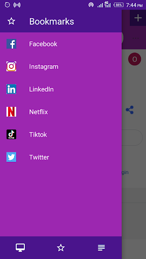 Boti Browser is a free, safe and fast web browser and video downloader. It is royal purple because its meant for royalty like you. It has six (6) basic Bookmarks on the slider. The ‘Tab’ count is on top, you can add and close a Tab with ease. Watch movies online and download movies and photos, fast to your android devices. Enjoy surfing the internet.
