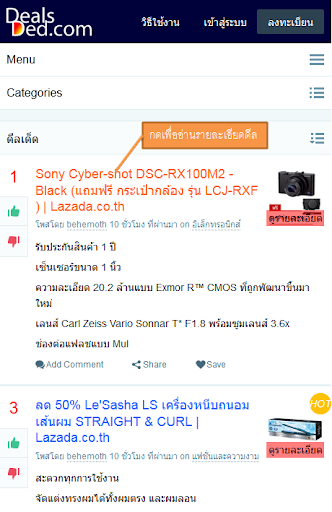 เพียงสมัครสมาชิก(ฟรี) และส่ง link ที่อยู่ดีลนั้นมาในแอพดีลเด็ด เพียงเท่านี้ทุกคนก็สามารถเห็นและแชร์ดีลนั้นได้ทันที