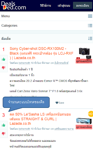 ดีลต่างๆ จะได้รับคะแนนโหวตจากเพื่อนสมาชิกด้วยกัน จึงทำให้ดีลทีดีจริงๆ สามารถพบเห็นได้ง่าย ดีลที่ไม่ดีก็จะตกอันดับไป