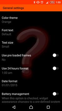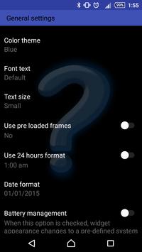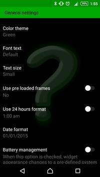 * Has a battery saving option that changes the format of the clock and date as well as the source of the widget, to a pre-defined configuration.