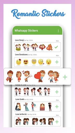 This Emoji Stickers for WhatsApp - WAStickers Apps 😘 contains a large collection of HD emoji stickers maker for whatsapp; specially designed for Love theme. You have a variety to choose big emoji stickers for free; just go to Get More Stickers for whatsapp option, download romance sticker maker for whatsapp and click on your favorite love sticker apps to express your romantic love story.