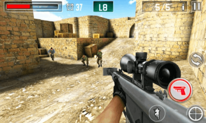 Gun Shoot War is a very interesting, elegant first person shoot game. It has beautiful frames,and is simple to control. As a commando, you need a great courage in the face of the fierce enemy. You must destroy the enemies , complete the tasks. The game is totally free.You can get the gold coins by shooting the enemys, so you can buy other more advanced guns. The more advanced gun make you more powerful. Of course, you are not alone , you can compete with people all around the world on the leaderboard. Dare you accept the challenge ? Join our assault team immediately and began to fight!The game features:1, exquisite picture, multiple maps: Dust Wall、Maze2, simple,operation, touch whole screen operation, changeable control sensivity.3,realistic combat experience, rich combat action and combat sound4,leaderboards on which you can share more fun with global players