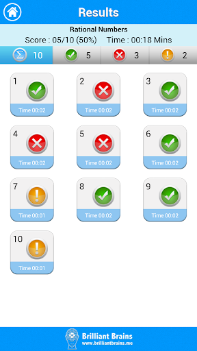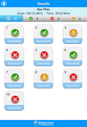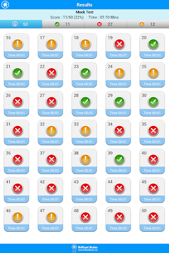 On the completion of each test the user is given a summary of questions answered correctly, incorrectly and skipped along with the time taken on each question. Every question can be reviewed and all questions have an explanation of the answer.