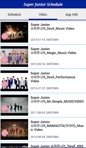 สามารถดูมิวสิควิดีโอหรือวิดีโอที่เกี่ยวข้องของซุปเปอร์จูเนียร์