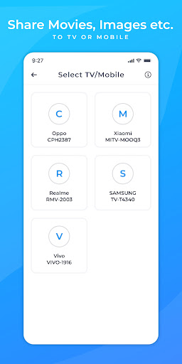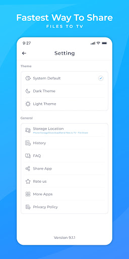 ส่งไฟล์ไปยังทีวี - การแชร์ไฟล์เป็นแอปพลิเคชันที่ง่ายและง่ายมากในการถ่ายโอนไฟล์ไปยัง Android Smart TVช่วยให้คุณสามารถแบ่งปันภาพยนตร์เพลงภาพถ่ายรายการทีวีหรือไฟล์ใด ๆ ระหว่างมือถือไปยังมือถือหรือมือถือไปยังทีวีผ่านเครือข่ายท้องถิ่นของคุณได้อย่างง่ายดายและทั้งหมดทำได้โดยไม่มีอินเทอร์เน็ต