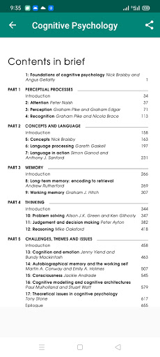 ส่วนที่ 1: กระบวนการรับรู้ ตอนที่ 2: แนวคิดและภาษา ส่วนที่ 3: หน่วยความจำ ส่วนที่ 4: การคิดในส่วนที่ 5: ความท้าทายธีมและปัญหา