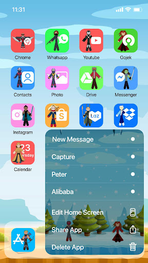 - รองรับวิดเจ็ตสามตัว: ปฏิทิน, ภาพถ่าย, นาฬิกาและอื่น ๆ ที่ออกแบบมาในสไตล์เกม Stickman