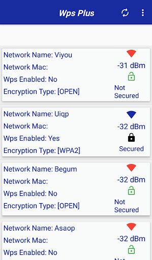 ใช้งานง่ายเครือข่ายสแกนที่ง่ายมากในฐานะเราถ้าคุณจะเห็น "Blue Cross" พวกเขามีแนวโน้มที่จะมีความเสี่ยงมากที่สุด เปิดใช้งานโปรโตคอล WPS และรหัสผ่านจะเป็นที่รู้จัก
