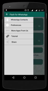 Flash for whatApp is a Utility application which alerts you in the form of a blinking flash when you receive an incoming message from WhatsApp™.