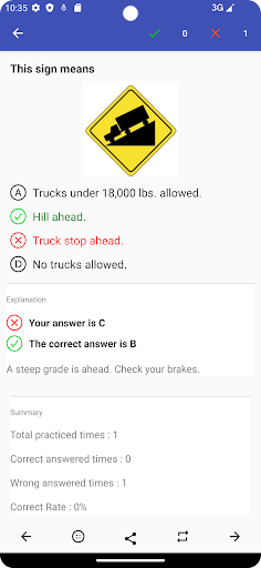 โดยใช้แอพนี้คุณสามารถฝึกฝนกับคำถามหลายร้อยคำถามรวมถึงสัญญาณจราจรและความรู้ในการขับขี่