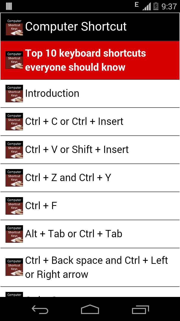 Computer Shortcut Keys app provides you the useful keyboard shortcuts in different categories so that you can increase your work speed.