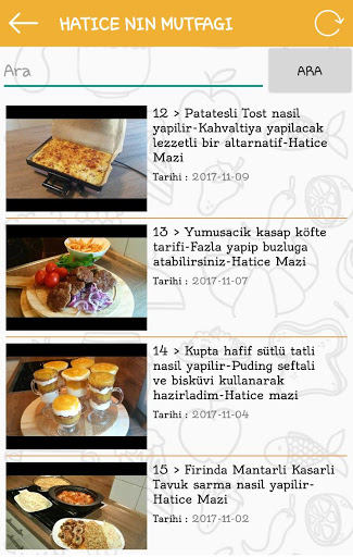 Uygulamamızda Bulunan Yemek Tarifi Kanalları;