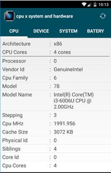 CPU X system and hardware info 2018 could be a electronic equipment and hardware info, diagnostic and analysis tool for your devices. CPU Identifier displays detailed information on the CPU and hardware components of an Android device. It detects the central processing unit, RAM, motherboard chipset and other hardware features of your Android phone and presents the information in simple tabs view.