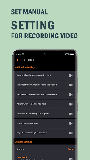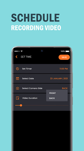 แอพเครื่องบันทึกวิดีโอพื้นหลังเป็นส่วนตัวแอพกล้องที่สามารถบันทึกวิดีโอ/เสียงในพื้นหลังอัตโนมัติช่วยให้คุณบันทึกวิดีโอได้อย่างง่ายดายด้วยตัวเลือกเพื่อเปิด/ปิดการใช้งานเสียงชัตเตอร์กล้องและตัวอย่างกล้องมันสามารถบันทึกวิดีโอและเสียงแม้กระทั่งหน้าจอปิดและคุณสามารถกำหนดเวลาการบันทึกในหน้าการตั้งค่า