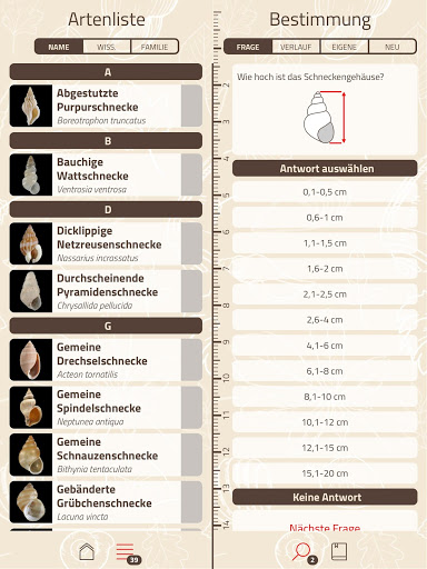 Die App ID-Logics besitzt eine eigene Intelligenz. Sie stellt Dir anhand einer internen Logik gezielte Fragestellungen zu ganz unterschiedlichen Merkmalen, die sich einfach beantworten lassen. Wir haben über drei Jahre intensiv an diese Logik gearbeitet und sie zusammen mit Experten und Novizen erprobt. Dieses Vorgehen besitzt mehrere Vorteile, die so von einem analogen Medium nicht erreicht werden können.