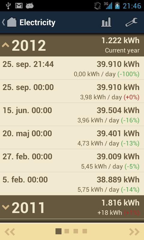 Meter Readings is a tool that makes it easy to regularly monitor the energy usage of your household. Add the types of meters you want to monitor, and select an interval. You will then be notified when it is time to read the meters.