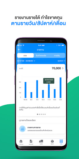 ด้วยรายงานแผนภูมิภาพและกราฟกว่า 20 รายการเกี่ยวกับสินค้าคงคลัง รายได้ กำไร และขาดทุน ... ระบบร้านค้าออนไลน์ SAPO จะช่วยให้คุณเข้าใจตัวเลขยอดขายแบบละเอียด ทั้งแบบรายวัน รายสัปดาห์ และรายเดือน