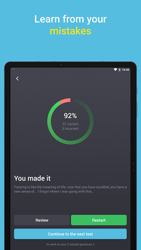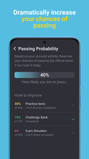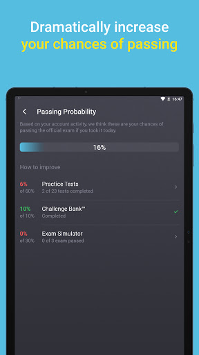 - Challenge Bank ™ (การทดสอบที่สร้างคำถามที่พลาดโดยอัตโนมัติจากการทดสอบการฝึกฝนทั้งหมดของคุณคุณสามารถย้อนกลับและตรวจสอบคำถามที่คุณผิด)