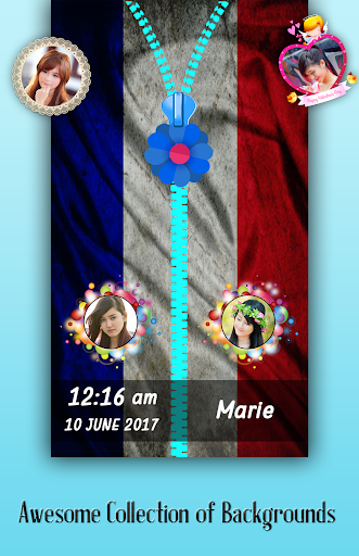 The best france flag zipper lock screen with custom settings for boys and girls.