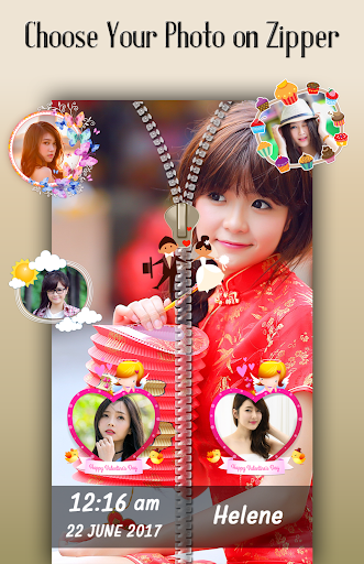 Best part of zipper lock screen is you can set couple photo on lock screen with awesome and creative objets. Even write your name on zipper lock screen. you can use it as couple zipper lock screen