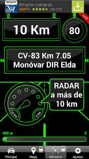 Cuenta con una estética impecable, información clara, imprescindible, concisa y perfectamente visible en todo momento. Un mapa con el que poder ver perfectamente por dónde vas y donde está exactamente el radar más cercano. Y un modo nocturno que proporciona una perfecta visibilidad de la información en pantalla sin incomodar lo más mínimo en condiciones de poca luz.