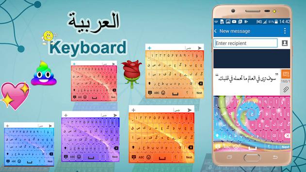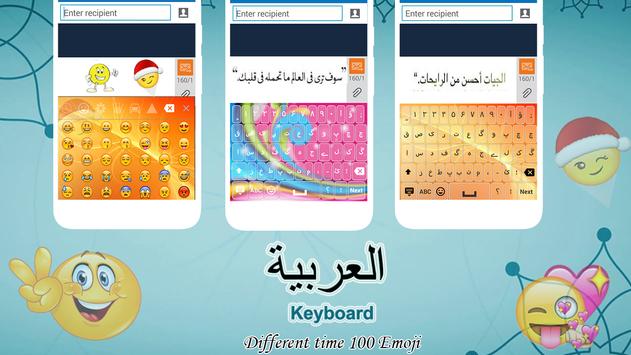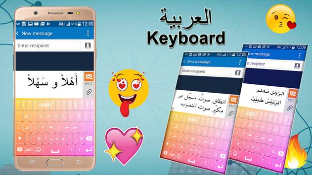 The Arabic keyboard contains Arabic and English words, symbols, and special characters.