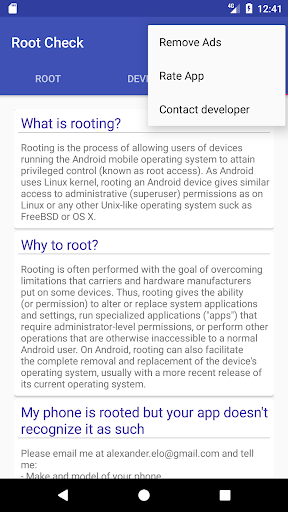 Check if your device has root (superuser) access with this simple app. Are you interested in rooting an Android device? This app also provides helpful rooting information and will point you to the right direction.