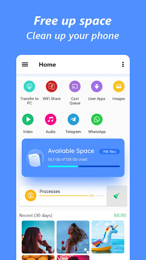 ตัวจัดการไฟล์จะให้หน้าการจัดการรูปแบบไฟล์ APK - เครื่องทำความสะอาดที่เก็บข้อมูล ในเพียงไม่กี่ก๊อกคุณสามารถเพิ่มพื้นที่ได้อย่างรวดเร็วและง่ายดายยิ่งขึ้น ลบภาพถ่ายและวิดีโอเก่าหลายรายการจากแอพแชทลบไฟล์ที่ซ้ำกันลบแอปที่ไม่ได้ใช้ล้างแคชและอื่น ๆ