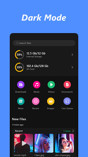 Global Search Bar - ค้นหารูปแบบไฟล์ใดหรือไฟล์ที่คุณต้องการในโทรศัพท์มือถือของคุณด้วยการคลิกเพียงไม่กี่ครั้ง ประหยัดเวลาในการค้นหาภาพถ่ายวิดีโอและไฟล์ในโทรศัพท์ของคุณ ไฟล์ใช้ตัวกรองแทนที่จะเป็นโฟลเดอร์เพื่อให้สิ่งของของคุณมีการจัดระเบียบอย่างสังหรณ์ใจมากขึ้น