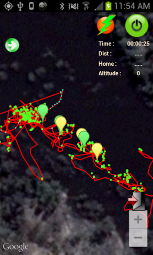 ในขณะนี้ PIN เป็นเพียงหมายเลขเว็บไซต์ หากคุณใช้ PIN เดียวกันแทร็กก่อนหน้าจะแสดงเป็นสีแดงและแทร็กปัจจุบันจะแสดงเป็นสีเหลือง เครื่องหมายสีเขียวแสดงตำแหน่งที่เปิดใช้งาน GPS (เช่นเริ่มต้น) เครื่องหมายสีเหลืองแสดงตำแหน่งที่คุณได้เข้าสู่ตำแหน่ง (หวังว่าทองคำ) จุดสีน้ำเงินเข้มเป็นจุดจีพีเอสที่ค่อนข้างแม่นยำจุดสีฟ้าอ่อนไม่ถูกต้อง จุดสีเขียวอยู่ที่ที่ตั้งไม่เปลี่ยนแปลงมากประมาณ 2 นาที สิ่งเหล่านี้มีประโยชน์เนื่องจากอาจเกี่ยวข้องกับจุดที่คุณขุดได้