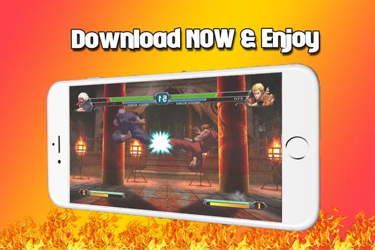 Back to your golden childhood with our application of classic king of fighter ultimate fights; Choose your favorite super hero character and learn all the tricks and super powers to fight and defeat your friends and be the real king of fighters. all characters straight out of the best SNK games