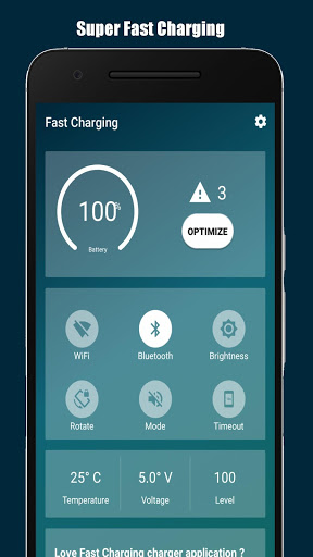 Fast Charging is an application that can help you to boost your smartphone battery speed, fast charging app also discovers your battery information and save your time just with a single click.