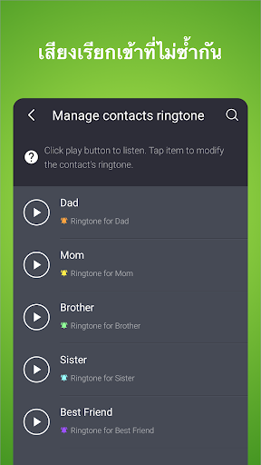 •อ่านรายชื่อ - แอพใช้สิทธิ์เพื่อช่วยให้คุณกำหนดเสียงเรียกเข้าเฉพาะให้กับผู้ติดต่อ